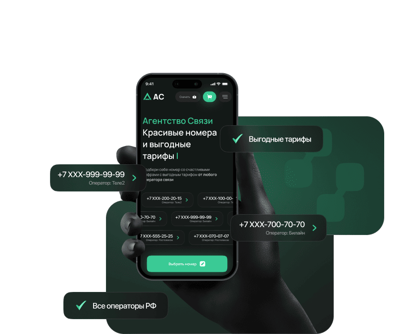Большой ассортимент «красивых номеров» ведущих операторов РФ с выгодными тарифными планами